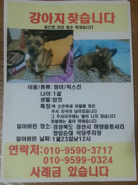 저희 멍이같은 강아지를 보신적이 있거나 아님 보셨다면 연락부탁드릴게요......