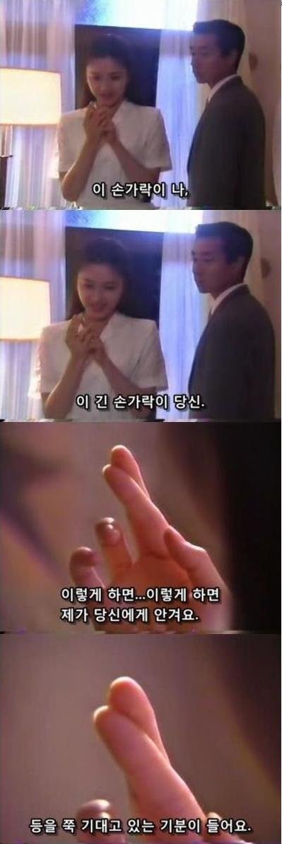 검지가 자신, 중지가 남주로 생각하고 손가락을 포개면 자신이 남주에게 기대고 있는 기분이 보든다하는 그녀... 왠지 사차원같음ㅋㅋㅋ