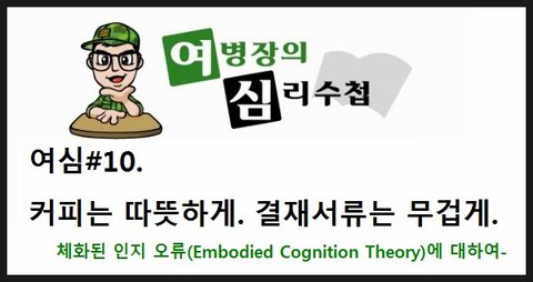 그렇다면 이것을 어떻게 나만의 노하우로 접목시킬 것인가? 많은 결정을 내리고 상대방에게 짧은 시간동안 어필을 해야 하는 군대. 체화된 인지 오류는 여러 업무를 맡아 다양한 사람과 마주해야하는 행정병들이 길러야 할 센스에 대한 힌트를 넌지시 던져주고 있다. 마지막으로 모시고 있었던 중대장님은 굉장히 직설적이고 시니컬하신 분이였는데 박상병이 결재판 없이 종이만 들고 들어가면 “고장 종이 한 장 딸랑 들고 온거여? 하...녀석 가벼운 놈이구만” 이라고 말했다. 그 다음서부터 나는 항상 묵직한 결재판과 함께 결재를 받으러 가라고 분대원들에게 요구했다. 그렇기 때문에 언제 갑자기 들이닥칠 검열관에게는 따뜻한 커피 한 잔이 필요한 것이다. 처음 보는 당신을 조금 더 ‘따뜻한’ 사람으로 무의식적으로 인식하게 만들기 위해. 무거운 결재판과 따뜻한 커피 뒤에는 단지 ‘예의’보다 더 섬세한 ‘촉각에 민감한’ 무의식을 뒤흔드는 마력이 존재하고 있다.