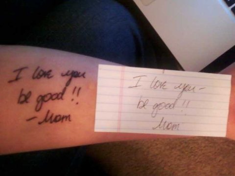엄마가 돌아가시던 밤에 아들한테 남기신 쪽지인데아들이 그대로 문신을 함