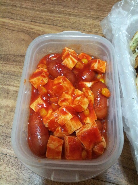 고추장 물엿 케첩을 대강 섞은 양념에 넣고 대강 졸임.