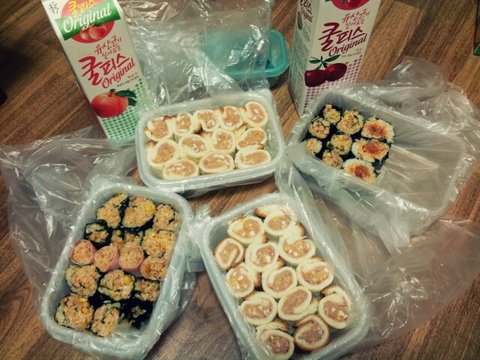 막내라고 맨날 얻어먹기 미안해서 직장에 싸갔던 볶음밥김밥과 샌드위치, 쿨피스.