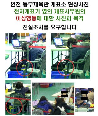 △ 수상한 가방의 등장. 인천에서는 개표원이 개인 가방에서 흰 네모난 뭉치를 꺼내 탁자 위에 올려놓고, 개인 가방을 들고 문 밖으로 오고가는 이상 행동도 목격.