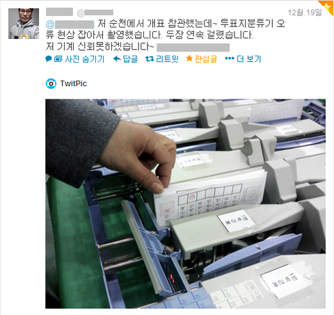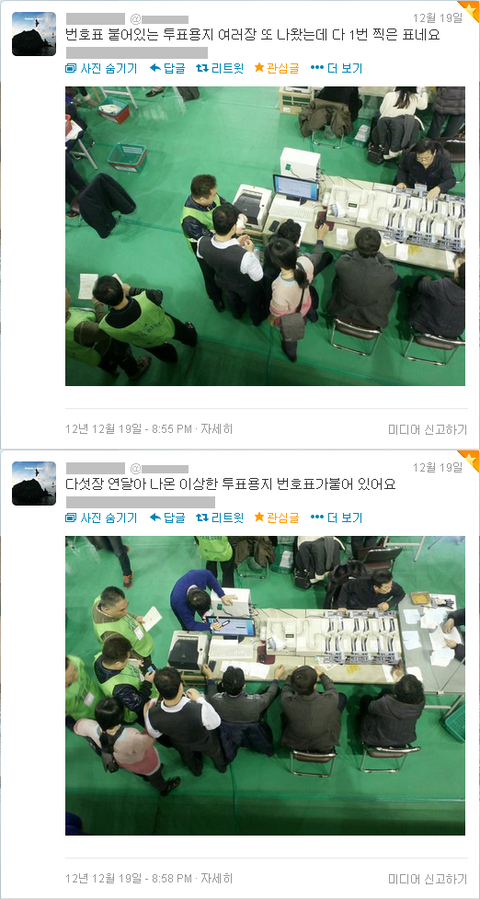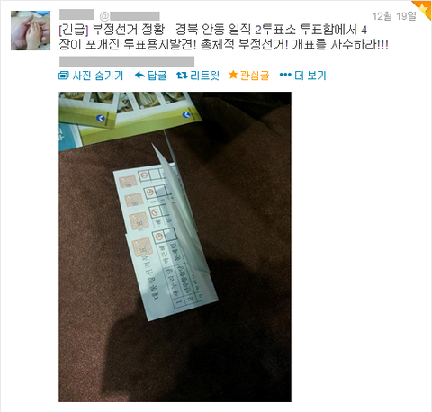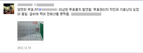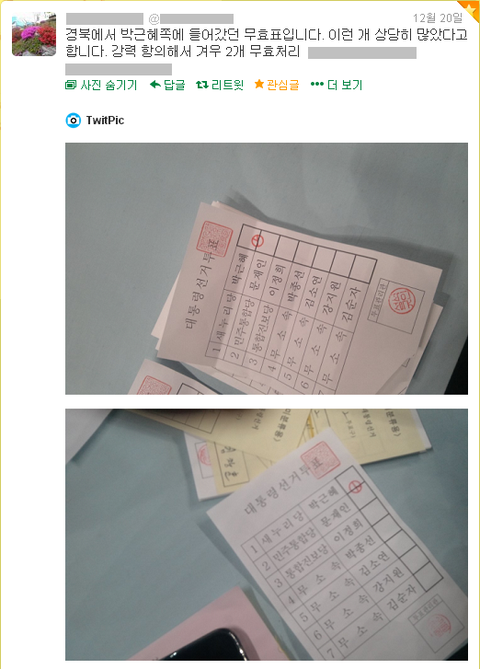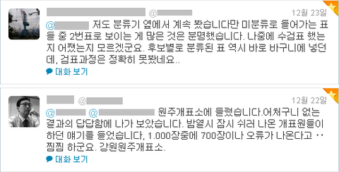 전국적으로 '개표상황표'에서 미분류표(전자개표기가 인식 못한 표)가 박근혜표로 높게 배분되는 양상을 보인다.