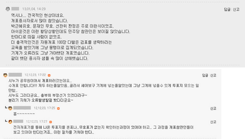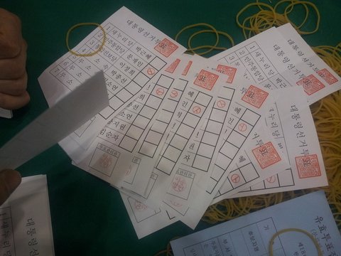 △ 대다수 개표소가 전자개표만 하고 수개표는 안함.