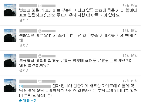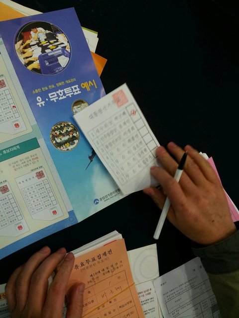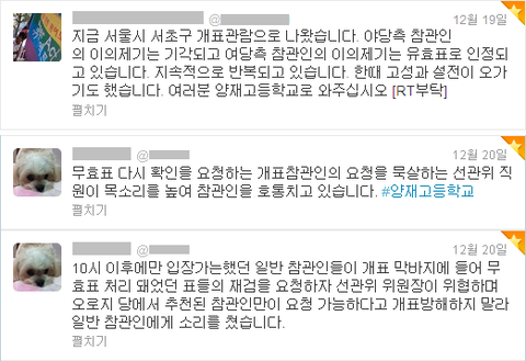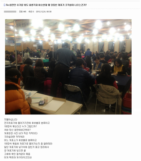 ( 박근혜표 묶음에 무효표가 섞여 있다고 항의하는 참관인 )