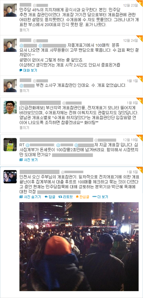 전자개표 후 수개표 안한곳 제보 바랍니다 (서울의소리 13.1.1)