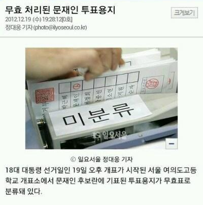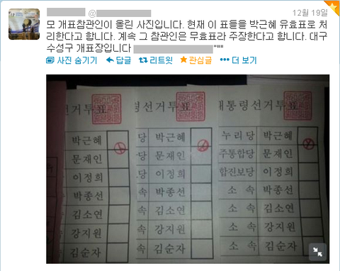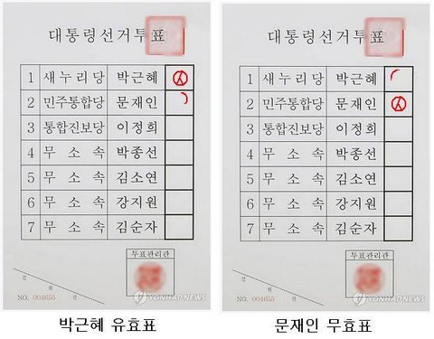 △ 전자개표기에서 문재인표, 무효표가 박근혜표로 분류.