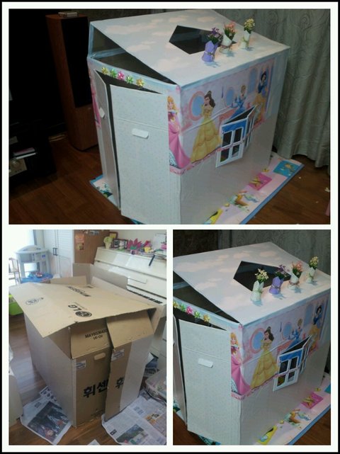 남편이 에어컨 박스 주워다 만든 딸아이 집