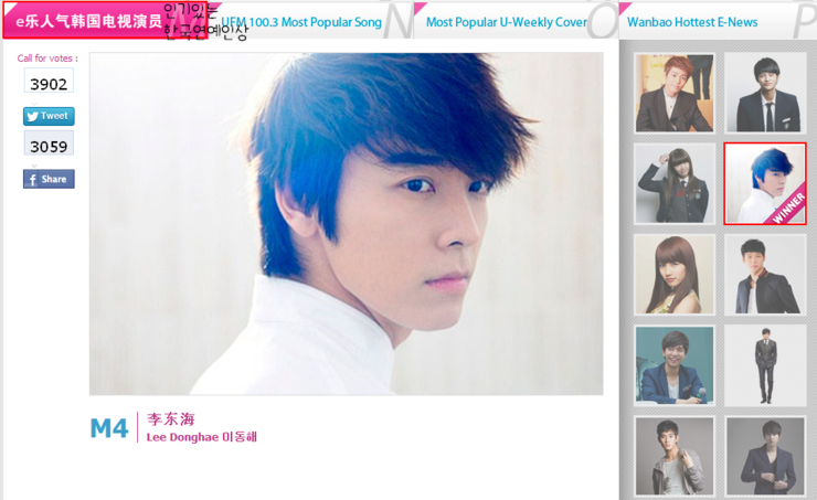Most Popular Korean TV Artist(동해)