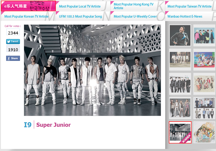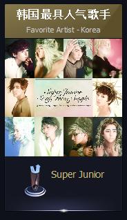슈퍼주니어가 인유에타이 V차트 어워드에 두번이나 당당히 이름을 올렸습니다