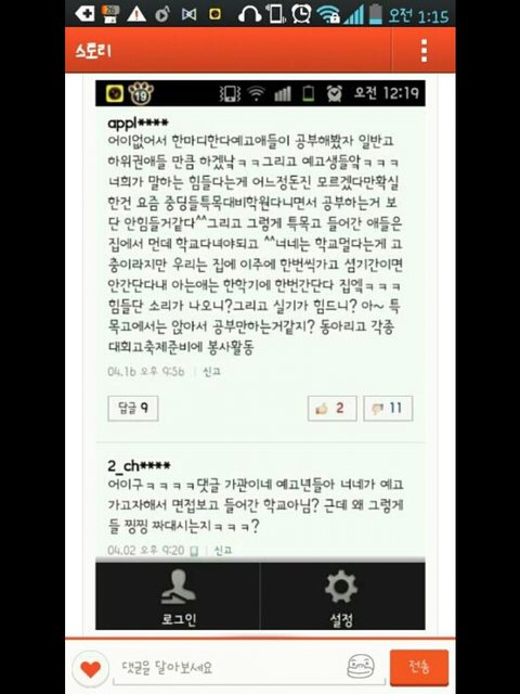 제가 요즘 카카오스토리를 봤는데 캡쳐글이 몇 개 올라와있더라구요. 친구들이나 선배분들 모두 기분이 언짢아보였구요. 왜인지 내용을 봤는데 정말 말이 안나오더라구요.