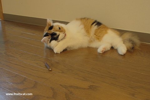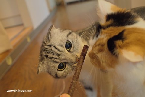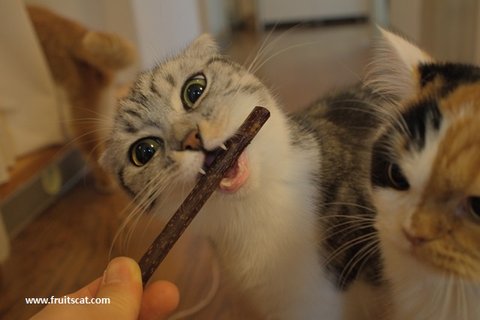 개다래나무(마타타비)는 고양이를 헤롱거리게 만드는 작용을 합니다. 극단적으론 고양이마약이라고도 하시는 분이 있는데... 마약처럼 중독되진 않고요~