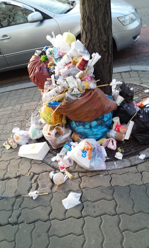참고로 사진은 국회의사당앞 길가지만 그 외에 사람들이 지나간 거리마다 여기저기 쓰레기,버려진 꽃들이 참 많았어요 거기다 상인들이 깔아뭉갠 화초. 침,담배 정말 지저분했어요 ㅜㅜ