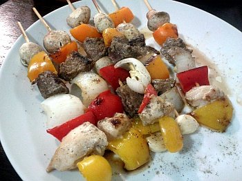 닭가슴살,파프리카,버섯,소고기를 꼬치에 껴서 구워먹었답니당