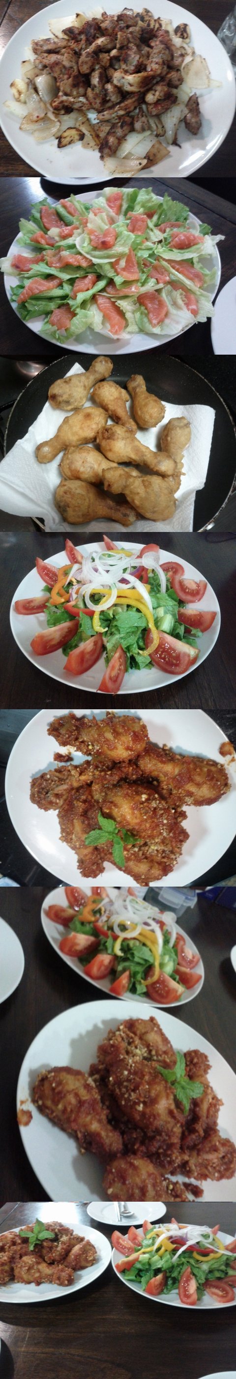 마트에 닭똥집에 파길래 사와서 해먹었어용 치킨도 닭다리만 사서튀기고 연어도 사다가 양상추 위에올려보고