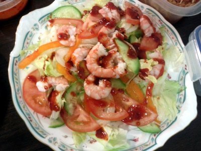 새우데쳐서 야채 대충넣고 샐러드 냠냠!