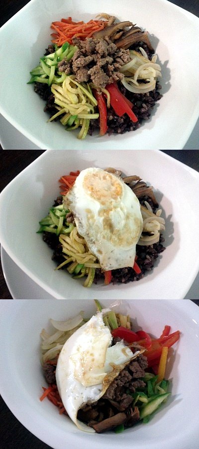 비빔밥이너무먹고싶어서집에있는야채아무거나넣고막먹었어용 파프리카 호박 소고기 버섯 등등ㅋㅋ