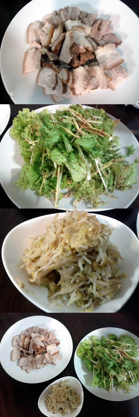그래서 마트가서 사왔음(외국인들은 살수있어요) 그래서 수육하구 숙주사서 사과랑약파랑식초랑