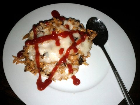 모짜렐라 치즈얹었어요 ㅋㅋㅋㅋㅋ오 처음먹어보는맛인데 김치볶음밥보단 부족한듯?하지만 GOOD!!!