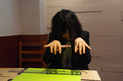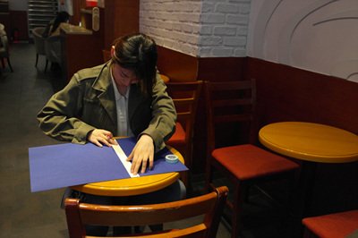 장미칼을 들고 종이를 잘라요