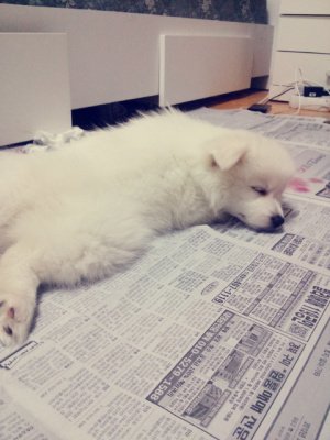 빨빨거리다 지쳣나바요 신문지위에서 잘도자네요