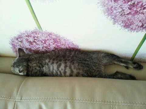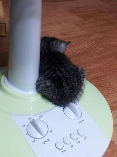 (밥 주려고 한참을 불렀건만 안보여서 보니 쇼파 위 틈에서 자고있음.
