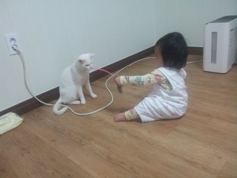 냥이가 아기와 잘 놀아주고 하니 그래도 저는 청소할 시간이