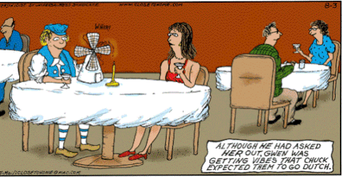 대부분의 밥값은 남자인 당신이 내게 됄것입니다. 물론 당신의 여자친구도 그걸 당연히 기대할것입니다. 외국도 한국과 마찬가지로 남자의 역할이 은연중에 명확히 구분 되어있습니다.