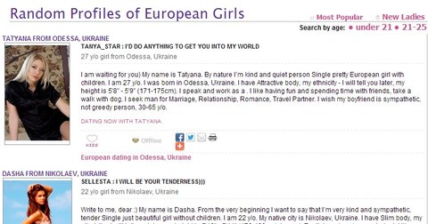 (조금의 검색만으로도 쏟아져 나오는 외국의 동유럽 여성 국제결혼 중매 사이트)