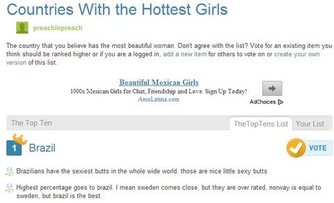 인터넷상 에서도, 일본여자가 제일 이쁘다고 동의하는 사람들이 있는가하면, 한국여성들이 제일 이쁘다고 핏대 올리는 사람들도 있으며, 북유럽 여성들이 예쁘다고 설전을 하는 사람들과, 남미 여성들, 태국 여성들, 프랑스 여성, 아일랜드 여성이 제일 예쁘다고 주장하는 사람들 등등 말도 안됄만큼 어떤 여성이 더 예쁜지는 항상 뜨거운 주제입니다.