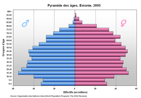 (에스토니아와 러시아의 남녀비율. 55세 이상부터 남자의 수가 급격히 줄기 시작합니다. 0세에서부터 54세 까지는 남녀 동일하거나 남자가 우위에 있는것을 확인하실 수 있습니다.)