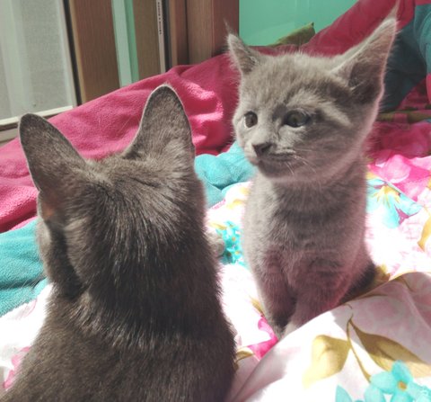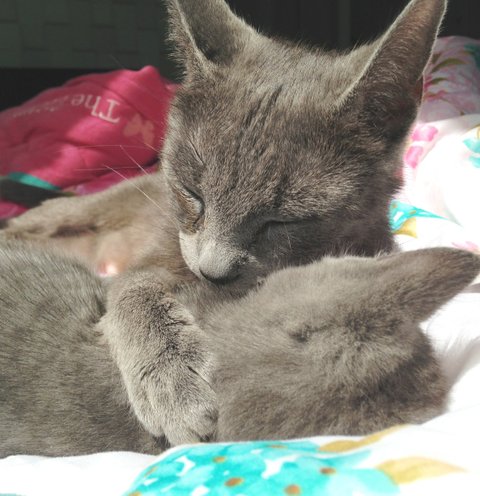 아가들은 다 분양가고 마지막에 분양간 아가 돌보는 상냥이 사진이에여>