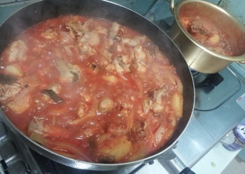 회사사람들과 점심에 같이먹을양 만든다고 닭3마리 보글보글!!!! ![]()