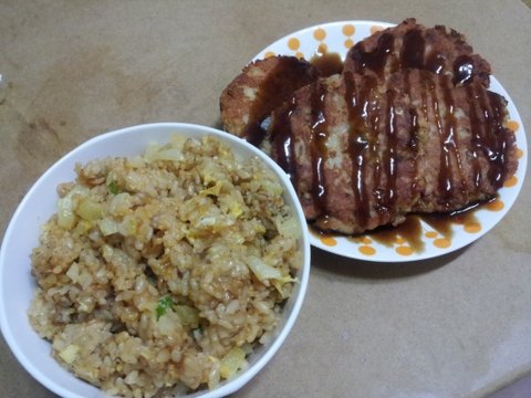이건 찬밥을 요리조리 볶은것과 스팸스테이크라고 ㅋㅋㅋㅋㅋㅋㅋㅋ알랑가몰라?ㅋㅋㅋㅋㅋ