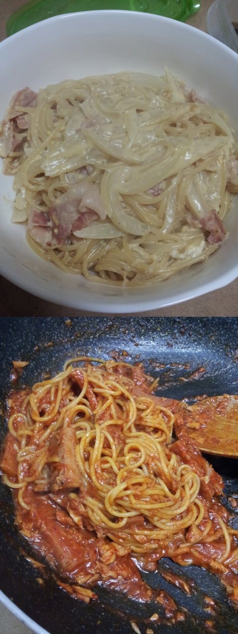 밑에껀 고추장스파게티~~~~ 매콤달콤!!!!!!!! 참치와햄을넣어서 정말 짱!!!