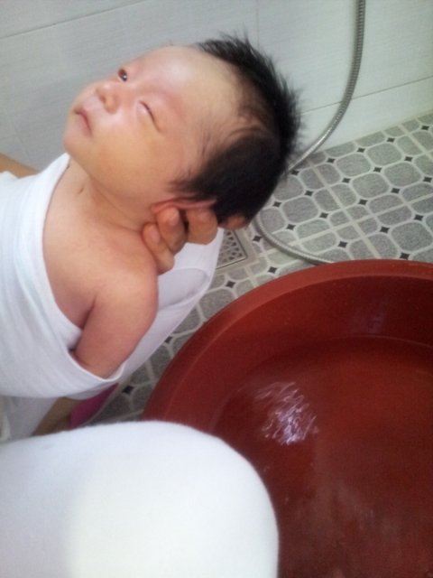 역시나 신생아 시절, 외할머니와 목욕 하며 찍은 사진.