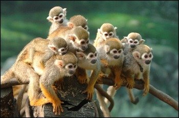 옹기종기 모여있는 모습이 귀여운 다람쥐원숭이.