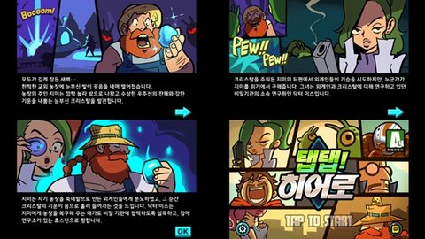 참고로 탭탭 히어로에선 지미 말고도 총 7명의 '평범한' 캐릭터가 또 나옵니다. 마치 철권 태그 토너먼트처럼 순간적으로 캐릭터를 바꿔서 플레이를 할 수도 있고 위험에 처하면 도움을 요청할 수도 있죠.