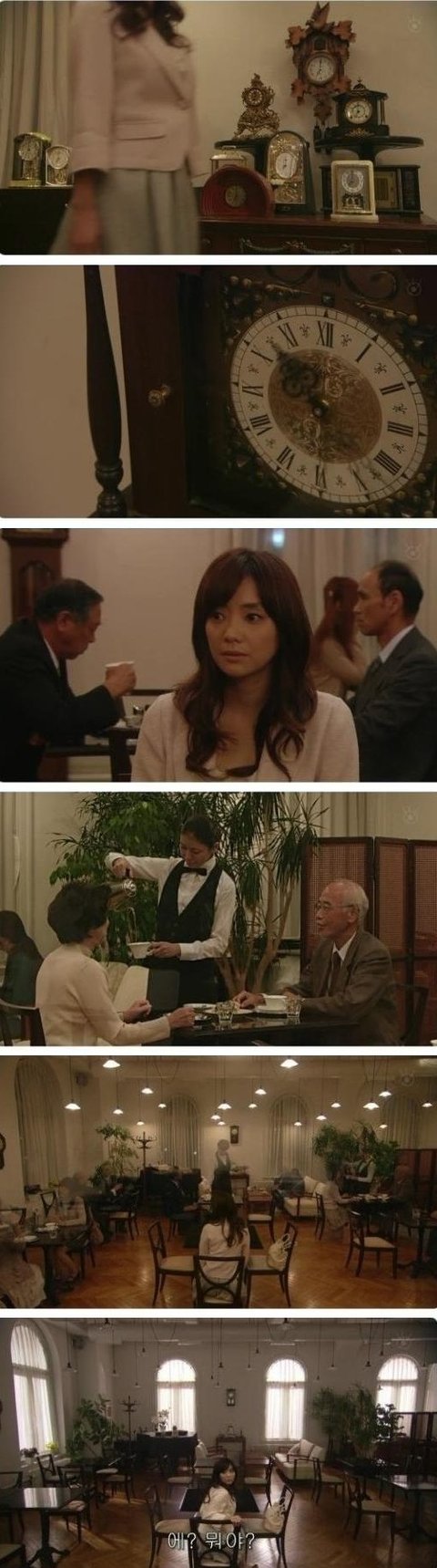 여주가 빈자리를 찾아 가고 있는데 시계의 시,분,초침이 제멋대로 휙휙 돌아가더니 가게안 손님모두가 눈깜빡할세에 사라져있음. 그리고, 여주가 들어온 시간은 저녁이었는데 갑자기 창밖이 밝아짐.