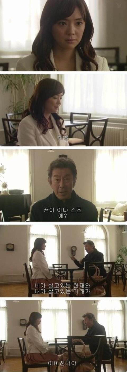그리고 다시 장면이 바뀌며 그 할아버지 등장함ㅋㅋ 꿈이라 생각하는 여주 눈감공 자려함ㅋㅋㅋㅋ그런 여주를 보고 꿈이 아니라며, 여주가 살고있는 현재와 할아버지가 살고있는 미래가 이어진거라함.