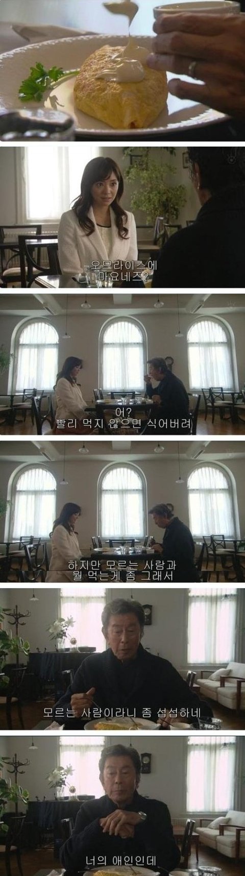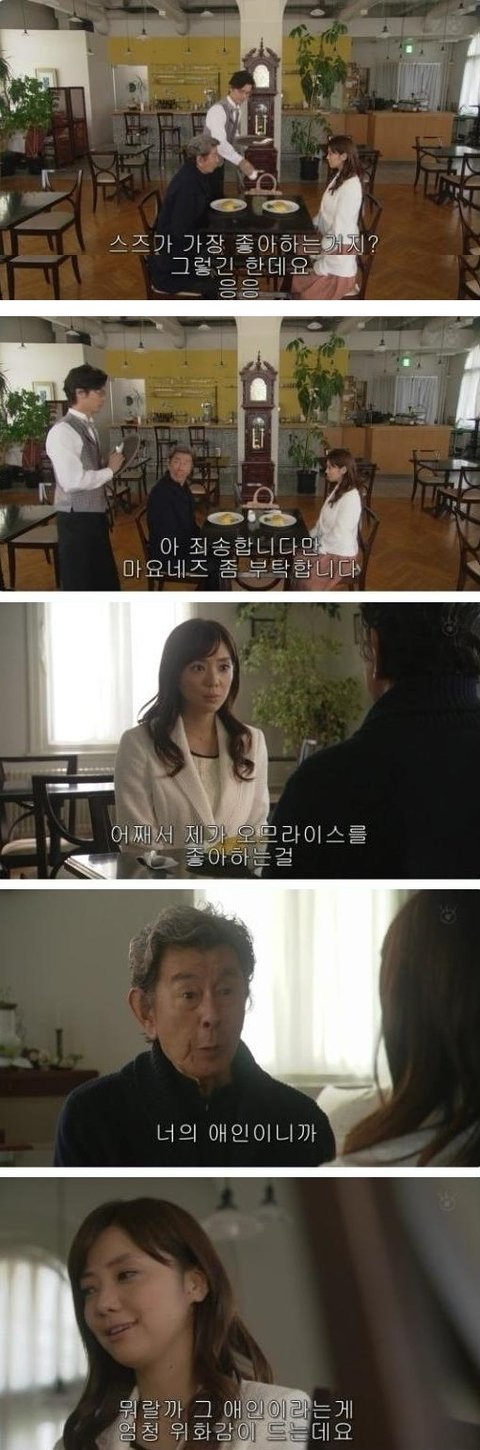 근데.... 할아버지 오므라이스에 마요네즈를 뿌려서 먹음ㅋㅋㅋㅋㅋ 식성 특이 하신듯ㅋ 그건 그렇고 여주는 모르는 사람과 밥먹는 것이 쫌 그런듯.