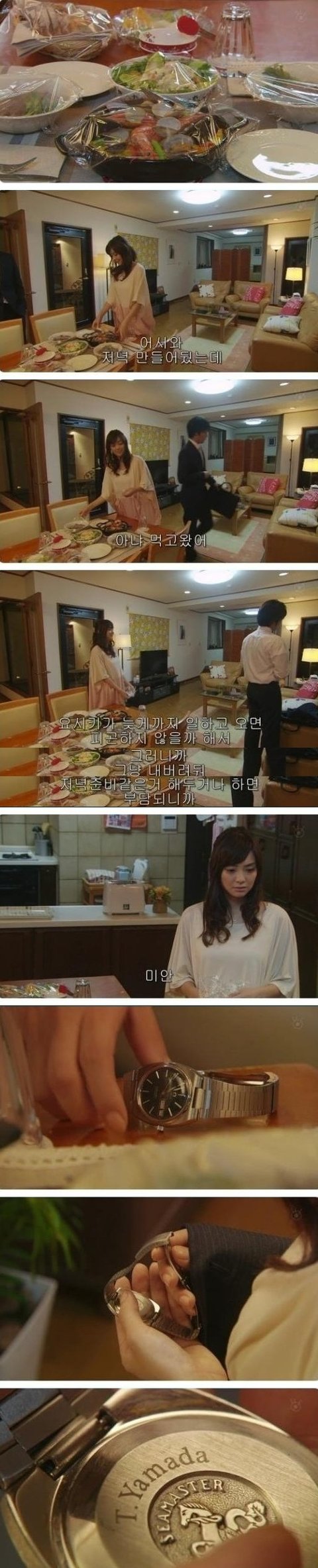 연인을 위해 저녁을 정성들려 준비했지만, 돌아오는것은 쌀쌀맞은 연인의 반응뿐.. 하지만, 자신이 준 아버지의 유품인 시계를 보고 위안을 삼는 여주.