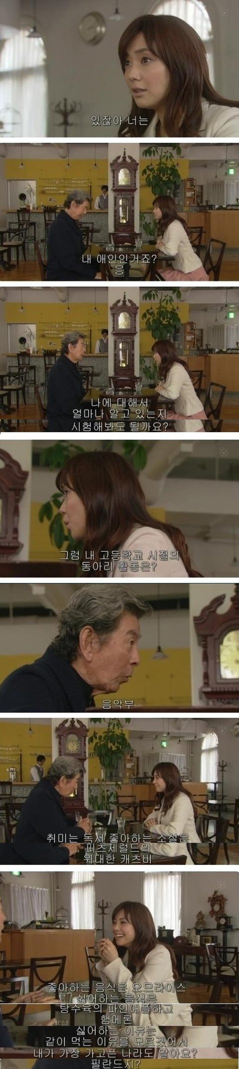 자신이 연인에게 준 시계를 보곤 할아버지가 진짜 미래의 연인일까 생각한 여주는 진짜 미래의 연인인주 시험해보기로 하고 자신에 대해 이것저것 물어봄. 할아버지는 자신만만한 태도로 다맞춤. 점점 할아버지가 진짜 미래의 연인이라 확신하는 여주. 덩달아 여주의 표정도 밝아짐ㅋㅋ