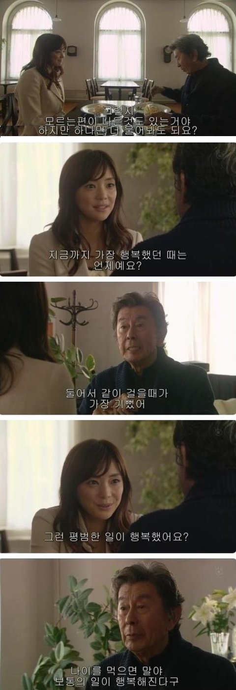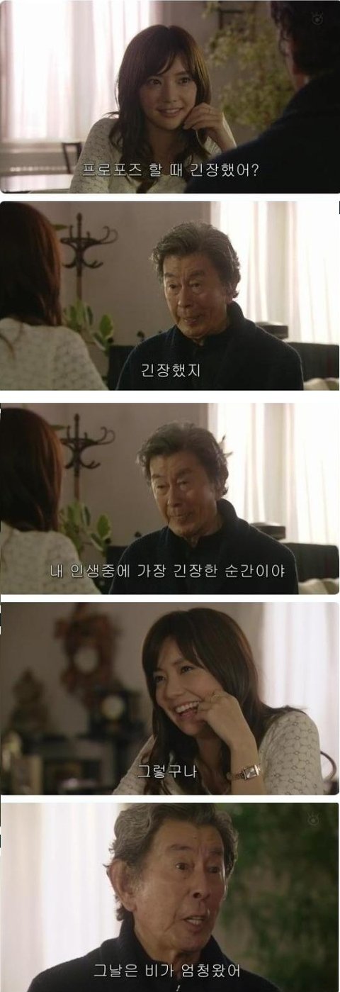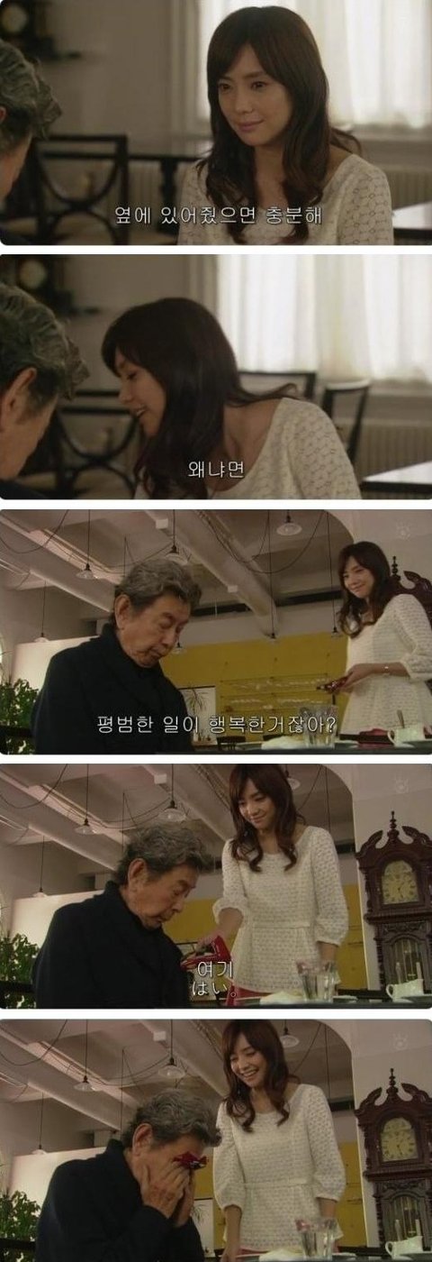 언제가 가장 행복했냐는 물음에 함께 길을 걸었을때가 가장행복했다는 의외에 답을 하는 할아버지. 근데 할아버지 은근히 로멘티스트이신듯ㅋ 멘트가 남다르심ㅋㅋ