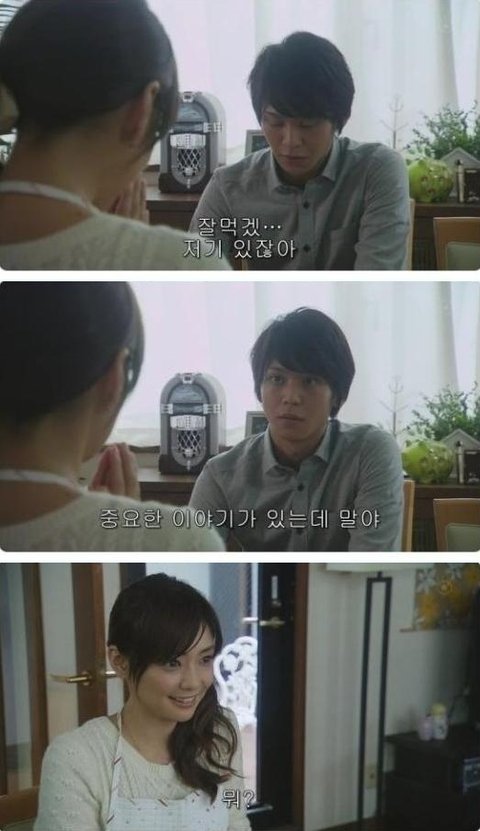 밥을 먹으려 하는데, 연인이 중요한 이야기가 있다함. 혹시 프러포즈일까 하는 기대를 안고 그게 뭐냐고 물어봄. 오늘여주... 미모포텐 자주 터지는 듯ㅋㅋ 귀욤귀욤돋네ㅋㅋㅋ.....![]()