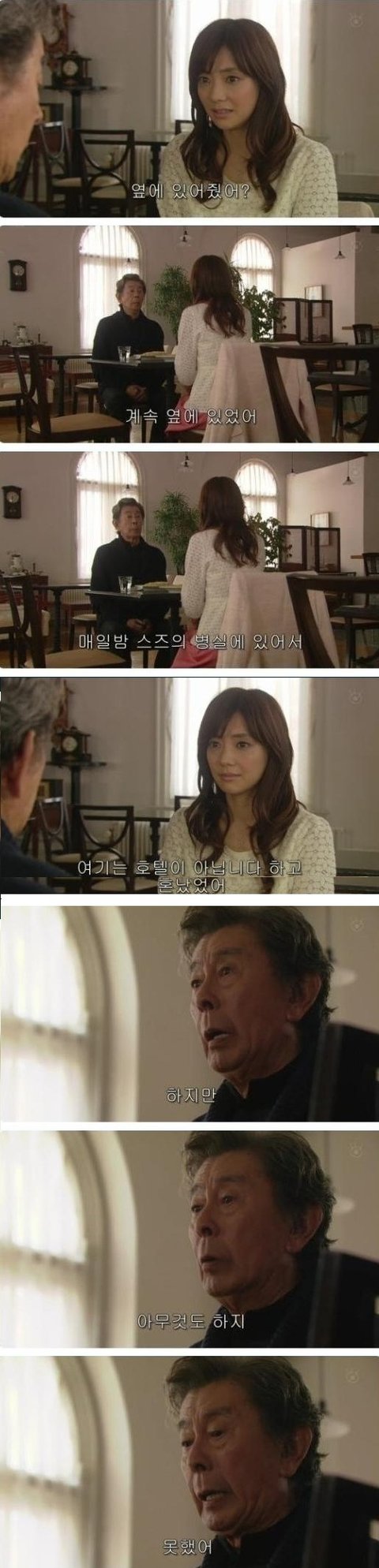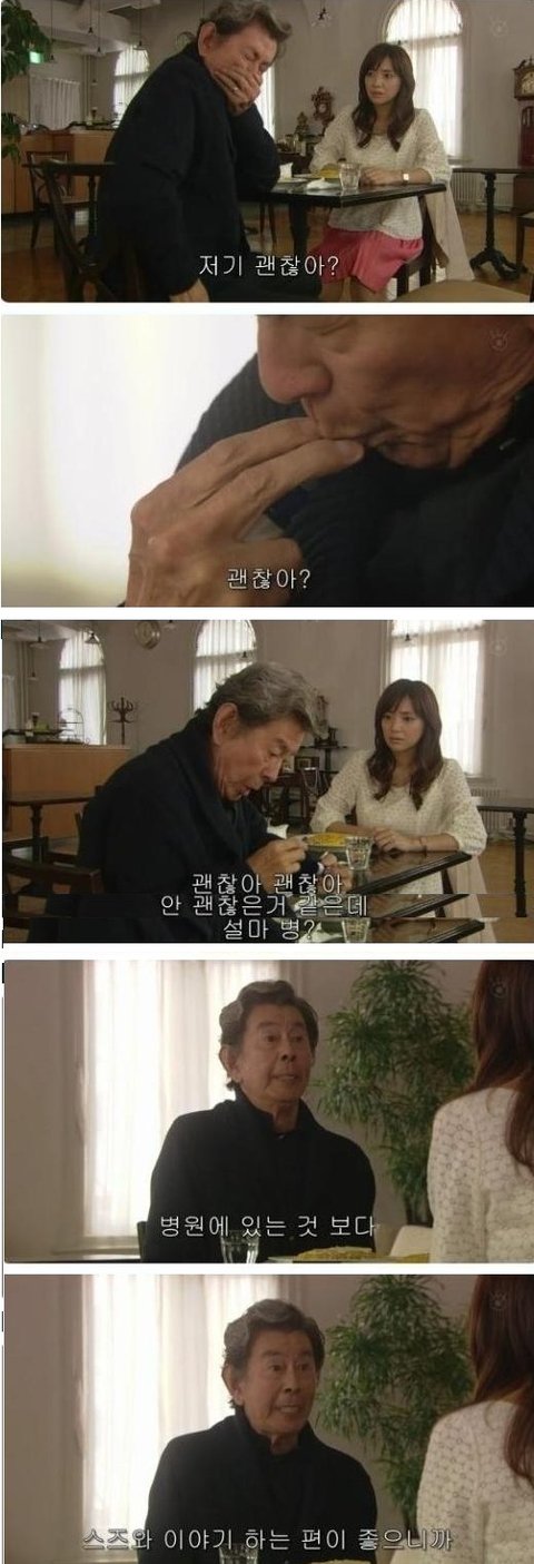 다음날, 할아버지를 만나러 카페에 간 여주. 근데 할아버지는 병에 걸리신듯함. 캡쳐가 이상하게 됬는데, 두번째 할아버지가 손가락 빠는게아니고 약먹는 장면임ㅇㅇ
