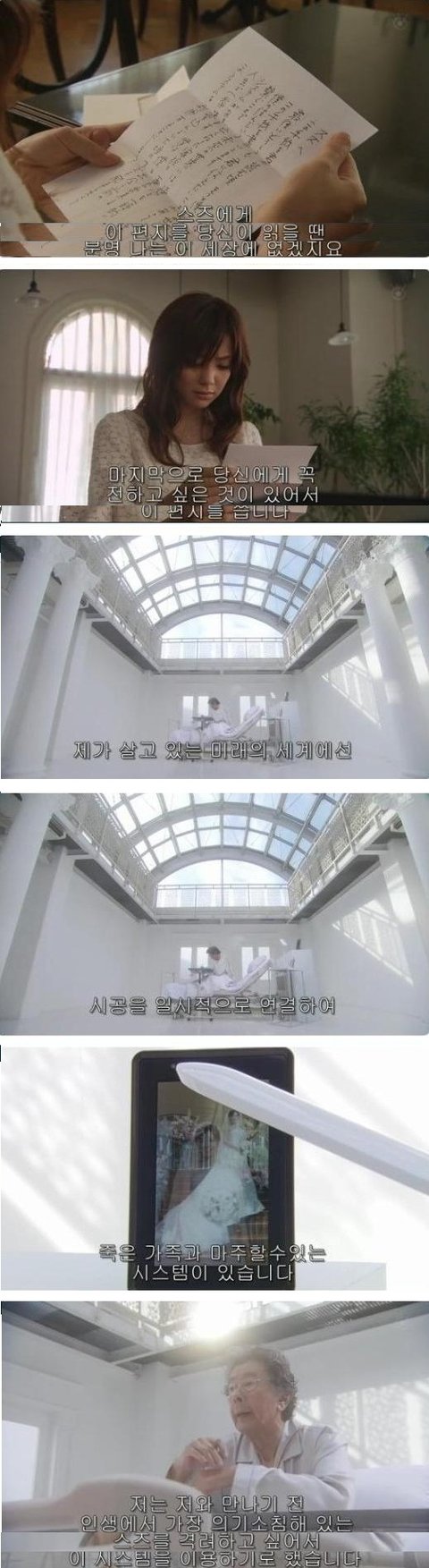 미래의 여주는 이미 이세상사람이 아닌듯. 이미 죽었냐는 물음에 침묵함으로 긍정하는 할아버지.