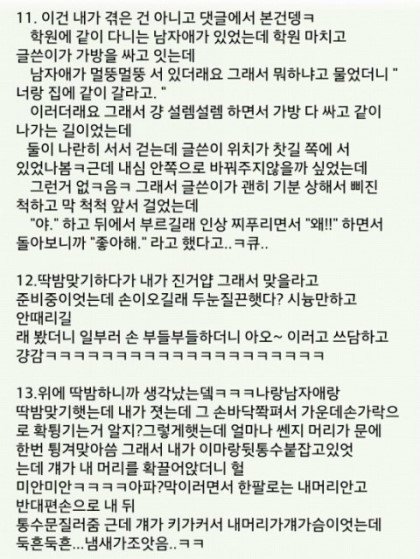 나도 학원남자애랑 딱밤맞기했는데 내가 져서 고개숙이고 맞으니까 다른남자애들이때리고 튐 ㅡㅡ 한대맞을껄 몇대 맞았는지 정말 보고있니 개객끼들아 보고 좀 본받아라
