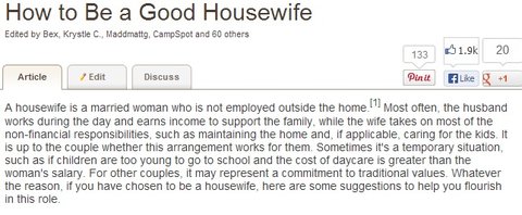 (이처럼, 서양또한 가정주부의 룰이 정해져 있으며, 어떻게하면 좋은 가정주부가 될 수 있을지 서술되어 있기도 합니다. 더 자세한것은 http://www.wikihow.com/Be-a-Good-Housewife )